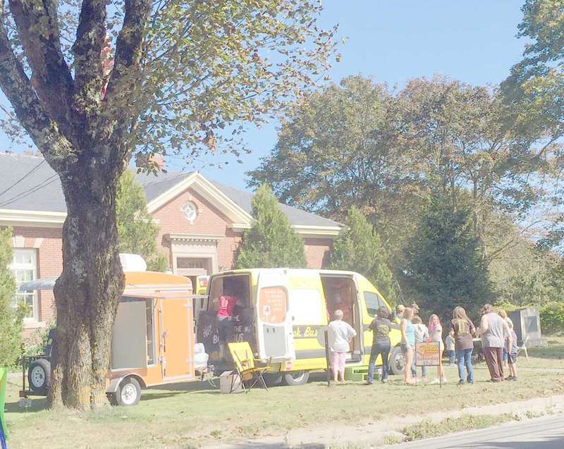 Bess the Book Bus made her annual stop at Jonesport’s Peabody Memorial Library last week. Jennifer Frances, who drives the bus from Florida and manages the mobile literacy outreach program, greeted area children and urged them to select free books. Also present were personnel from Axiom Technologies’ STEM program demonstrating robotics, and members of PML’s Friends of the Library recruiting members for the group that finances the library’s children’s programs. Bangor Savings Bank provided ice cream. Photo by Nancy Beal
