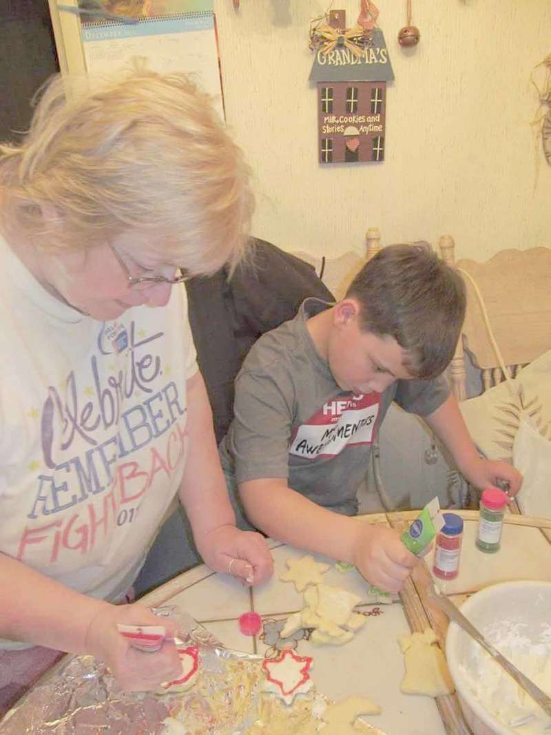 Izyck Archer decorates cookies with his great grandmother Donna Kilton, just as his mother used to do when she was growing up. Photo courtesy Alison Archer.
