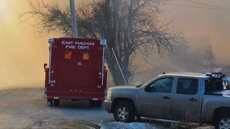 Gusts of 45-50 miles per hour reduced visibility for crews battling a blaze in Machiasport’s Larrabee village on Tuesday, March 2. Machiasport Fire Chief Dave Nielsen said the burning home was reported around 3:15 p.m., and he immediately called for mutual aid. East Machias, Jonesboro/Roque Bluffs, Machias, and Marshfield fire departments responded to the call.