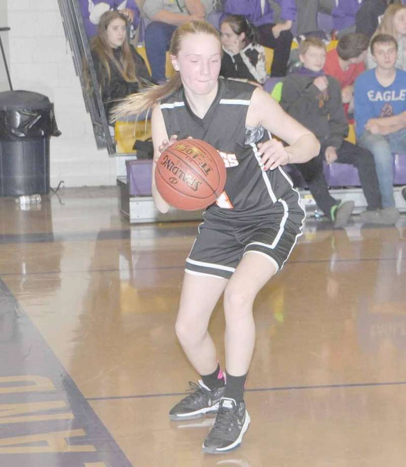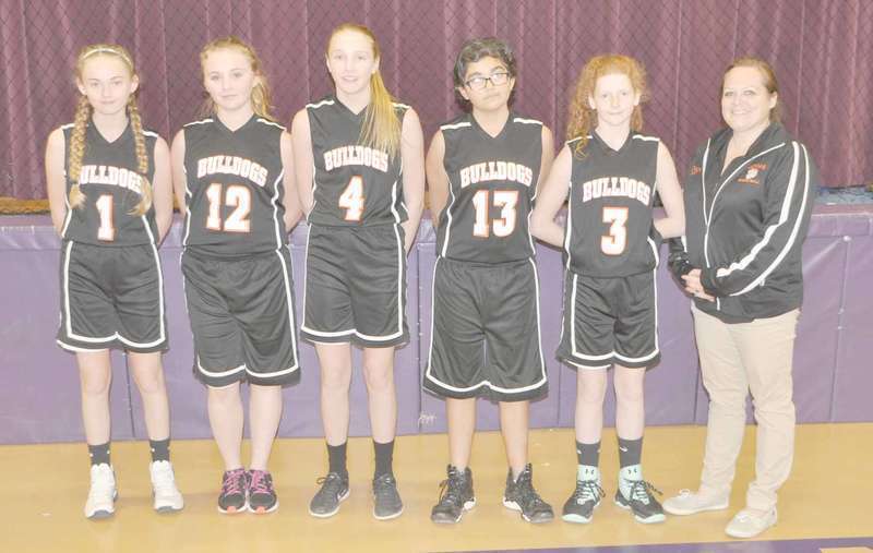 Pictured with Coach is the Machias JHS girls’ basketball team. Members include left - right : Jaida Case, Mileena Sylvia, Jaydin Anderson, Desaraye Beal, and Kaitlyn Guptill.