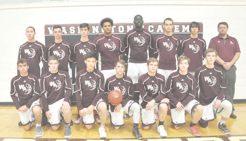 Pictured are the Washington Academy Raiders. Members include front left-right: Kyle Case, Micah Vose, Jim Lin, Ryan Easton, Nathan Lund, Nevin Rhodes, and Jeffrey Graham. Back left-right: Donald Soctomah, Brandon Allard, Joe Bragg, Marek Veal, Daniel Agyemang, Tihomir Babic, Milan Filipovich, and Coach Barry Terrill.